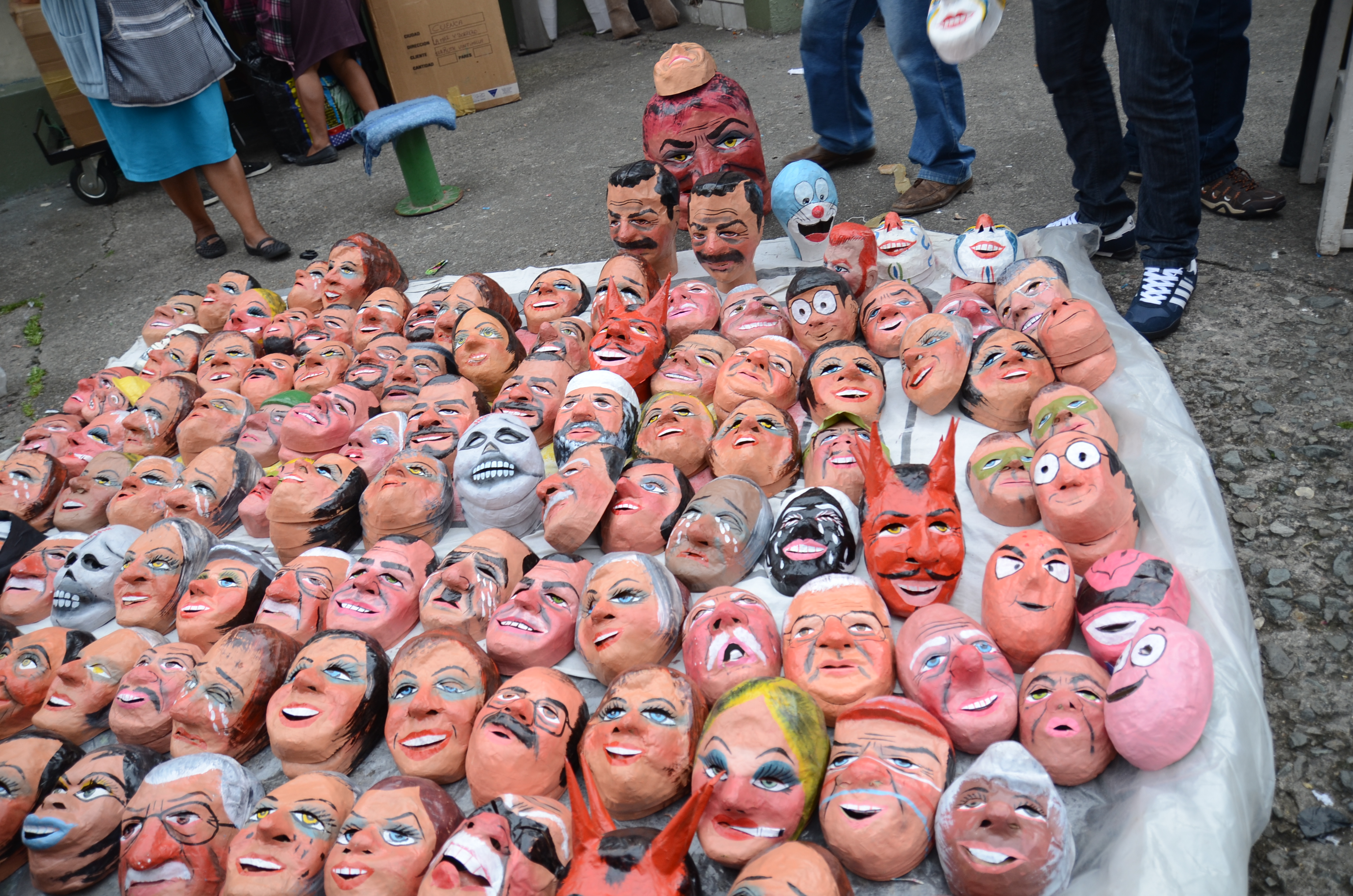 Another part of the celebrations involve creating something called monigotes.  For New Year’s Eve, a monigote is a doll-like figure made of old clothes stuffed with paper.  Some are papier-mâché creations representing popular figures.  Usually a monigote is created to represent something negative from the ending year. The monigote accompanies its creator for hours to days before it is burned in a huge street fire at midnight.  This symbolically eliminates the problems of the old year and ensures good luck during the new one.