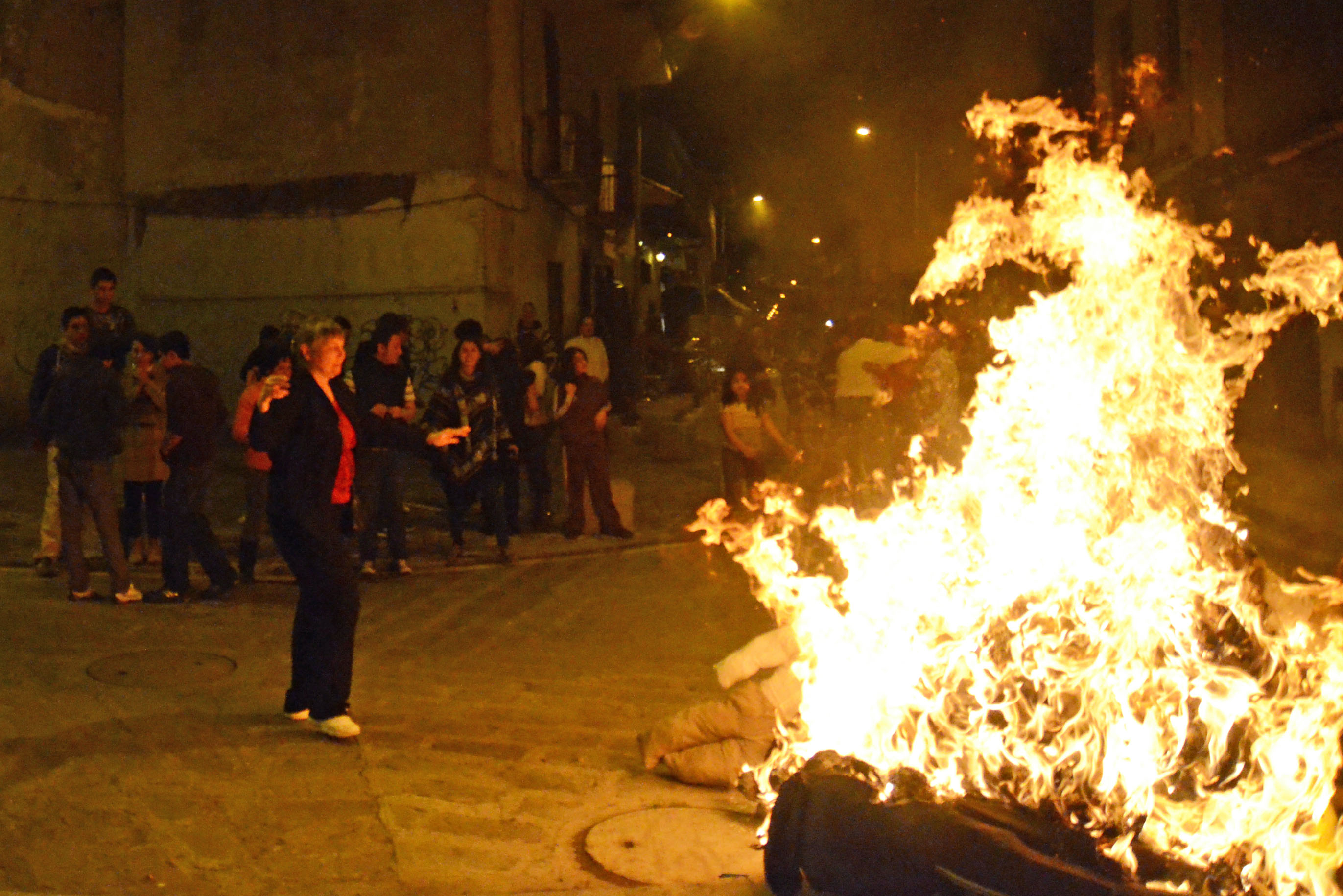Finally, all the displays and monigotes are burned in street bonfires at midnight, purging the bad spirits.  Bonfires spring up everywhere.  Because the streets are all paving blocks (not asphalt), the fires do not damage the streets.