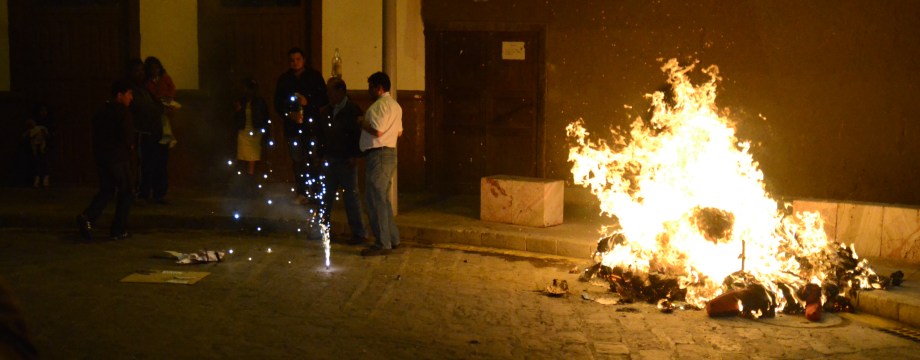 First, there are fireworks everywhere.  Cuenca is the leading producer of fireworks in Ecuador and is a major exporter.  Hence, fireworks are cheap here.  For $1, you can buy a really impressive sky rocket.  $40 US will get you a box of fireworks that, when lit, will fire one sky rocket after another for about a half hour.  This box alone is more impressive than some of the displays at the end of minor league baseball games.