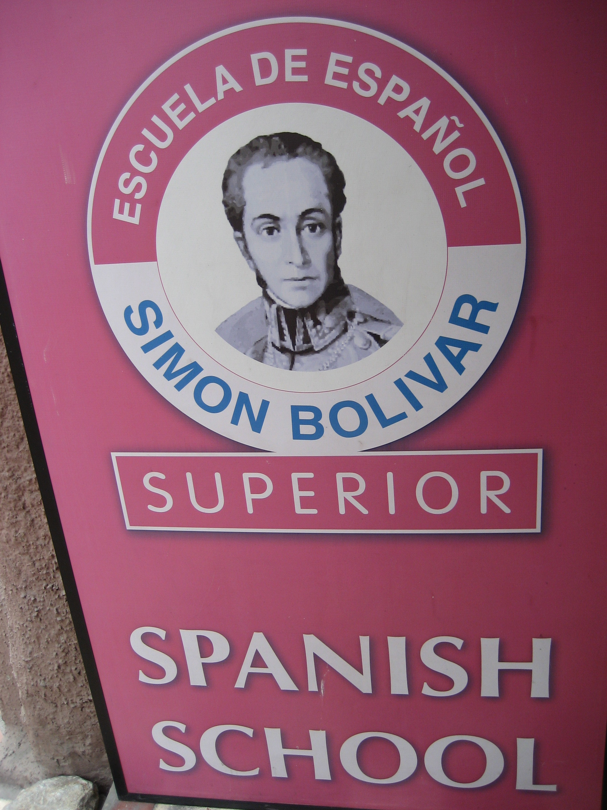 A view of the Simon Bolivar Spanish School that you won’t find on their website. The brassiere store is just a bonus, with some weird stuff on display!