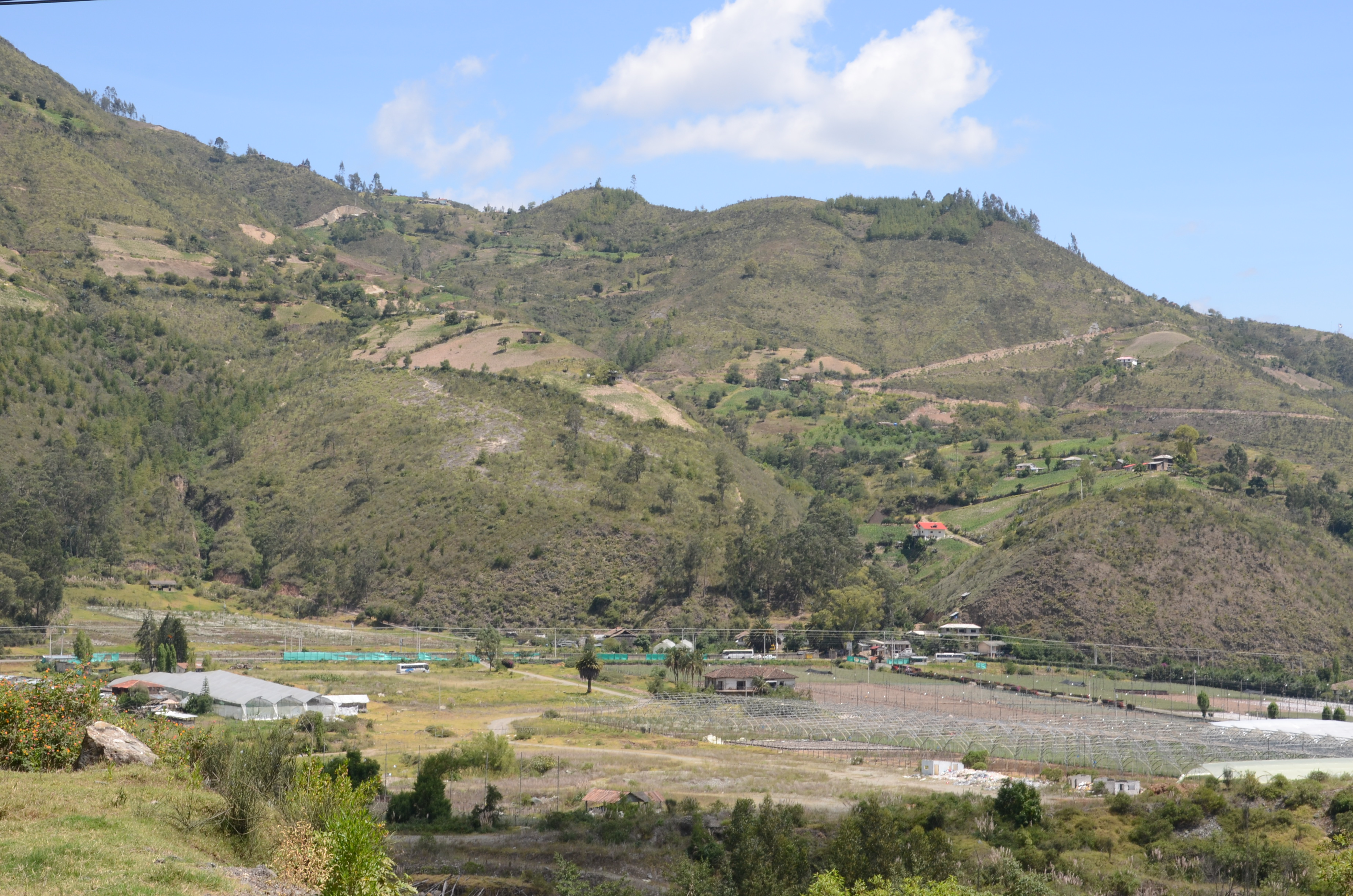 Two Who Trek buys different flowers weekly. Sometimes, the purchase is all roses. Other times we get gladiolas. Currently the featured bouquet consists of tiger lilies, baby`s breath and pastel roses. The best part of all is that we can create a bouquet like this for around $6 to $8. Prices are low, because almost all the flowers are grown locally. Just outside of Cuenca are large rose-growing operations like this one: