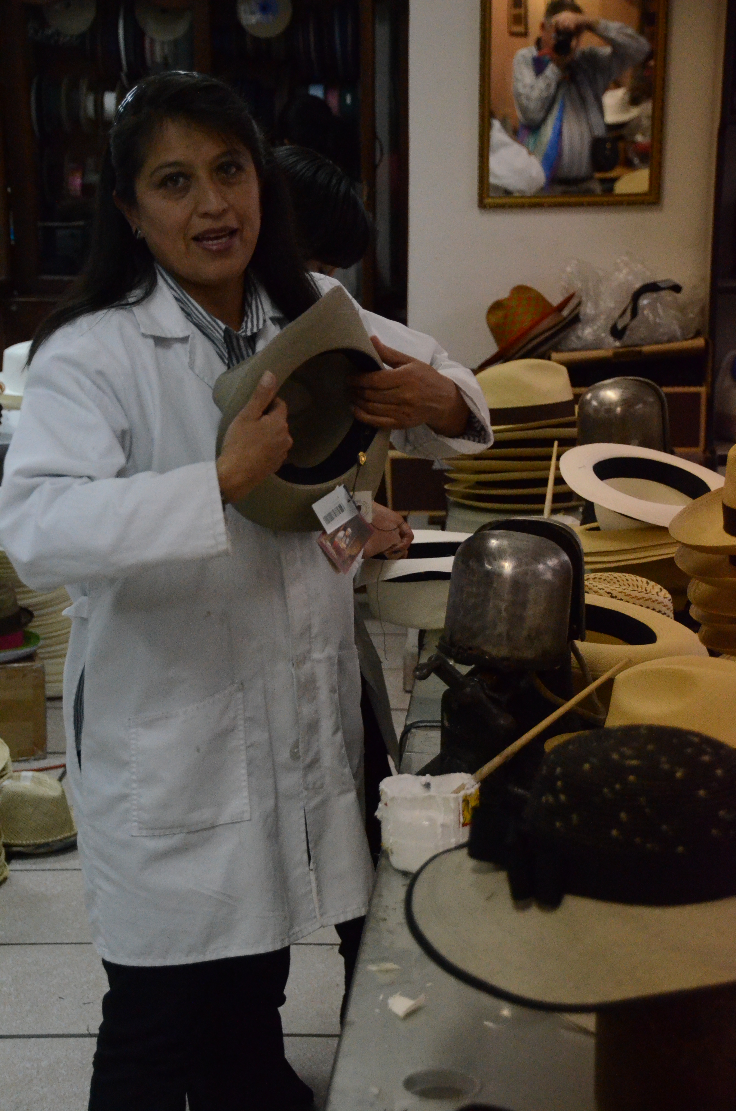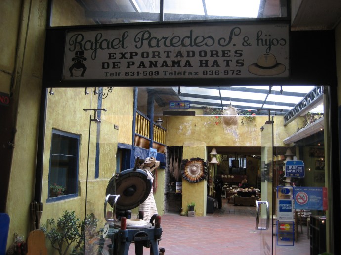 At the end of the tour, there was a hat emporium where Joe found a very fine paja de toquilla in light grey with a black band.