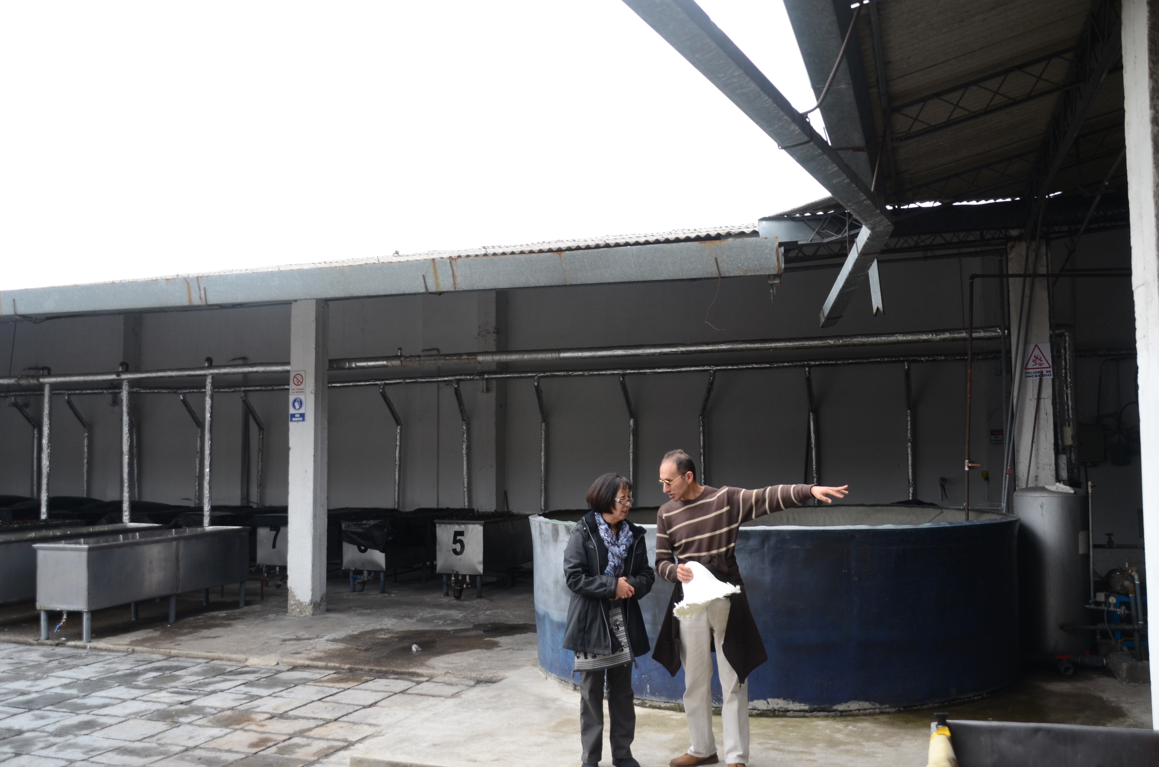 Hats soaking in the dye tanks. We don’t think dye has been added, although these hats could be being bleached for a pure white color.