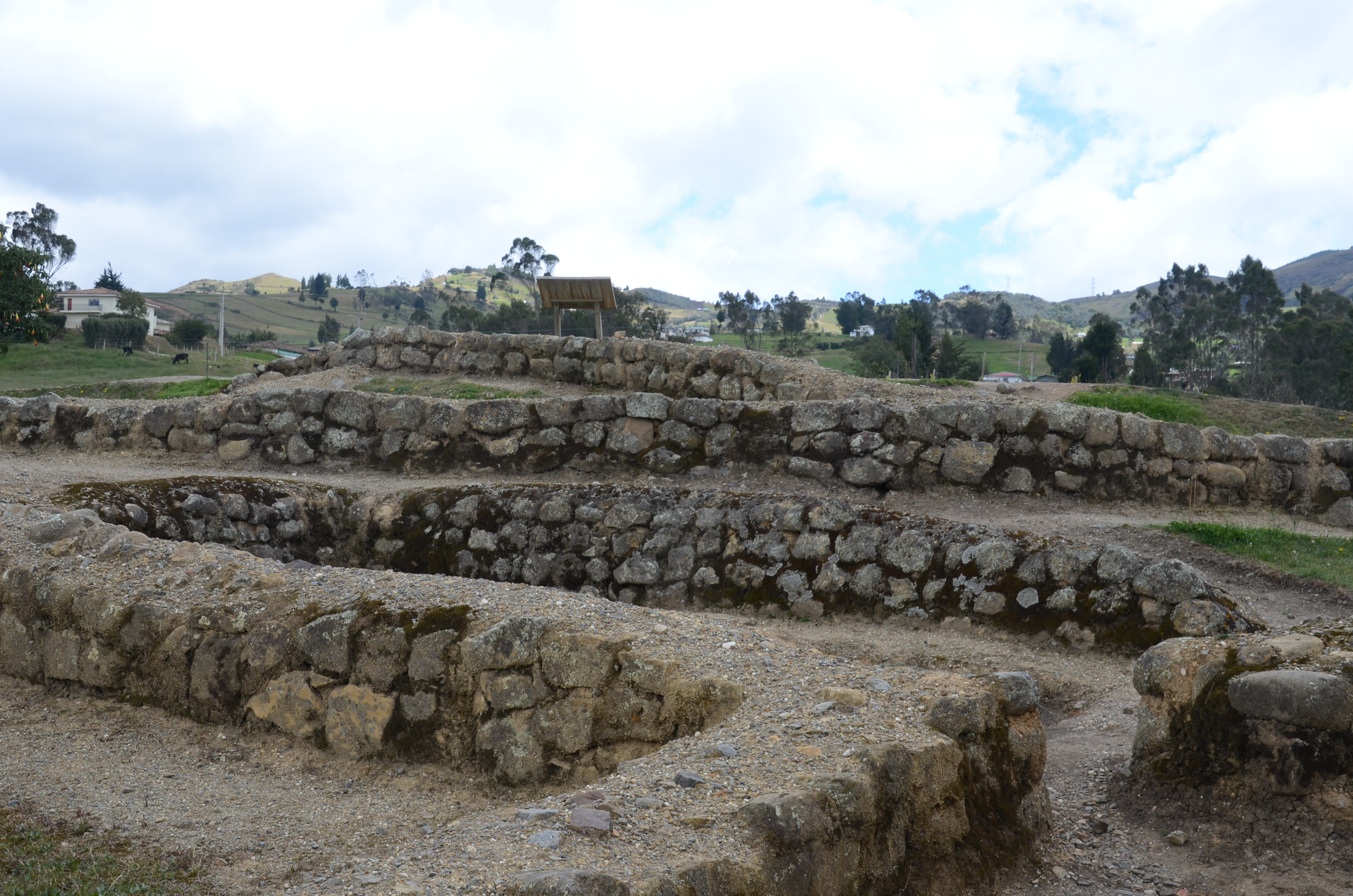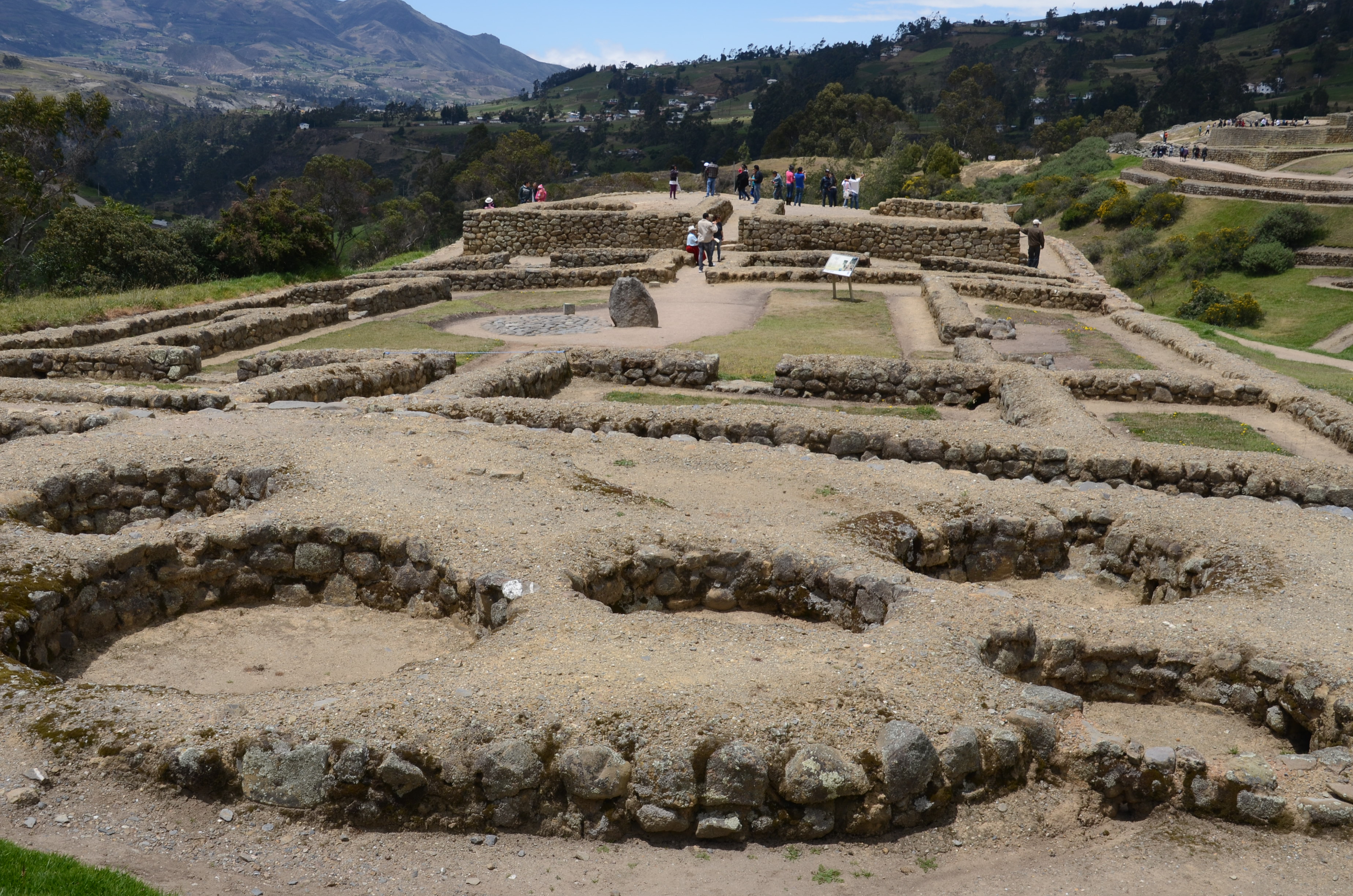 This archeological site is an up close and personal place with several possible reasons for being.  Its purpose was probably ceremonial, strategic and a tambo or resting place on the road to Quito.  Walk all over the grounds but keep in mind that the paths are the safest place to walk.  Other areas are extremely uneven, some with steep inclines and many rocks.