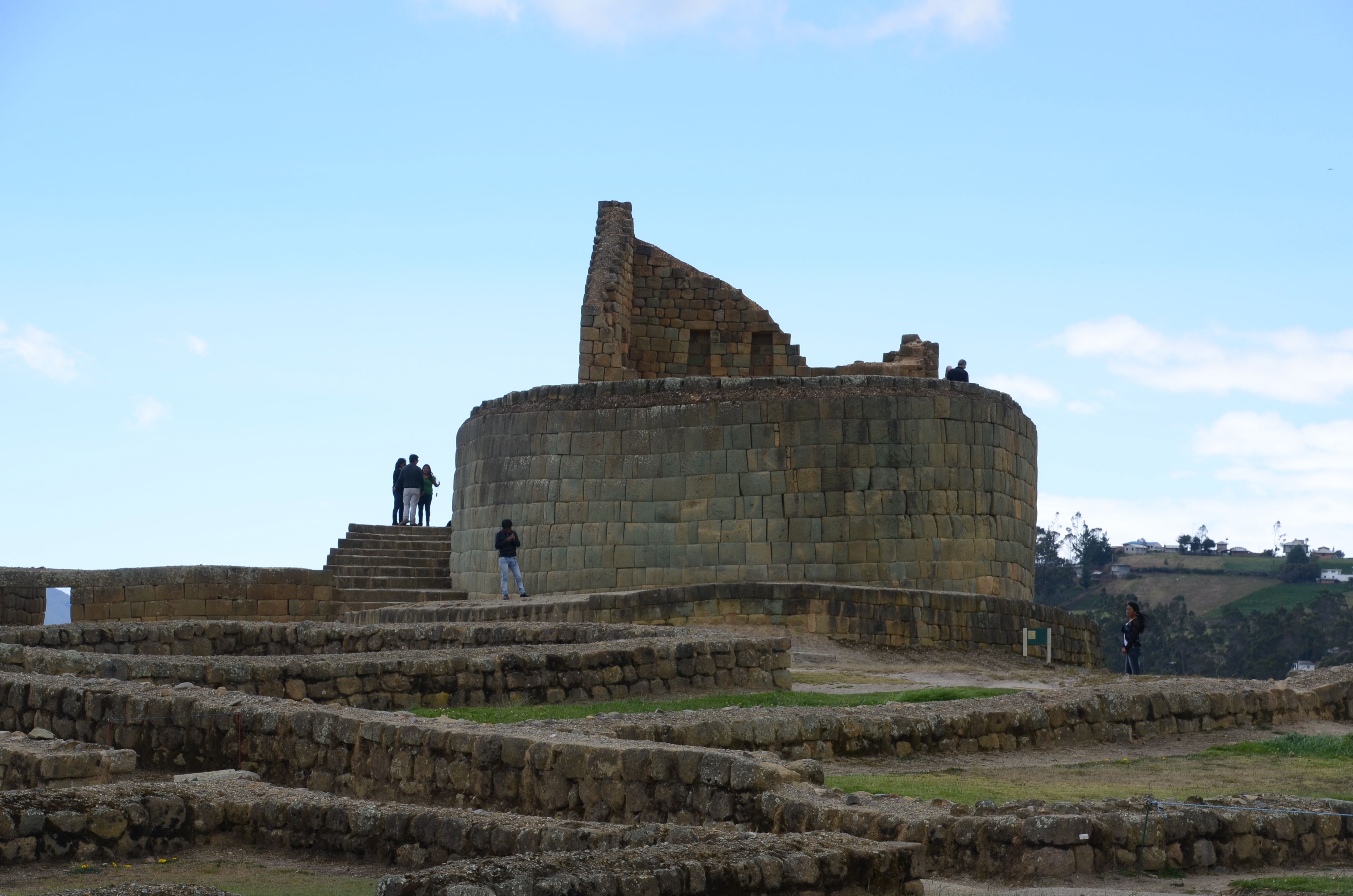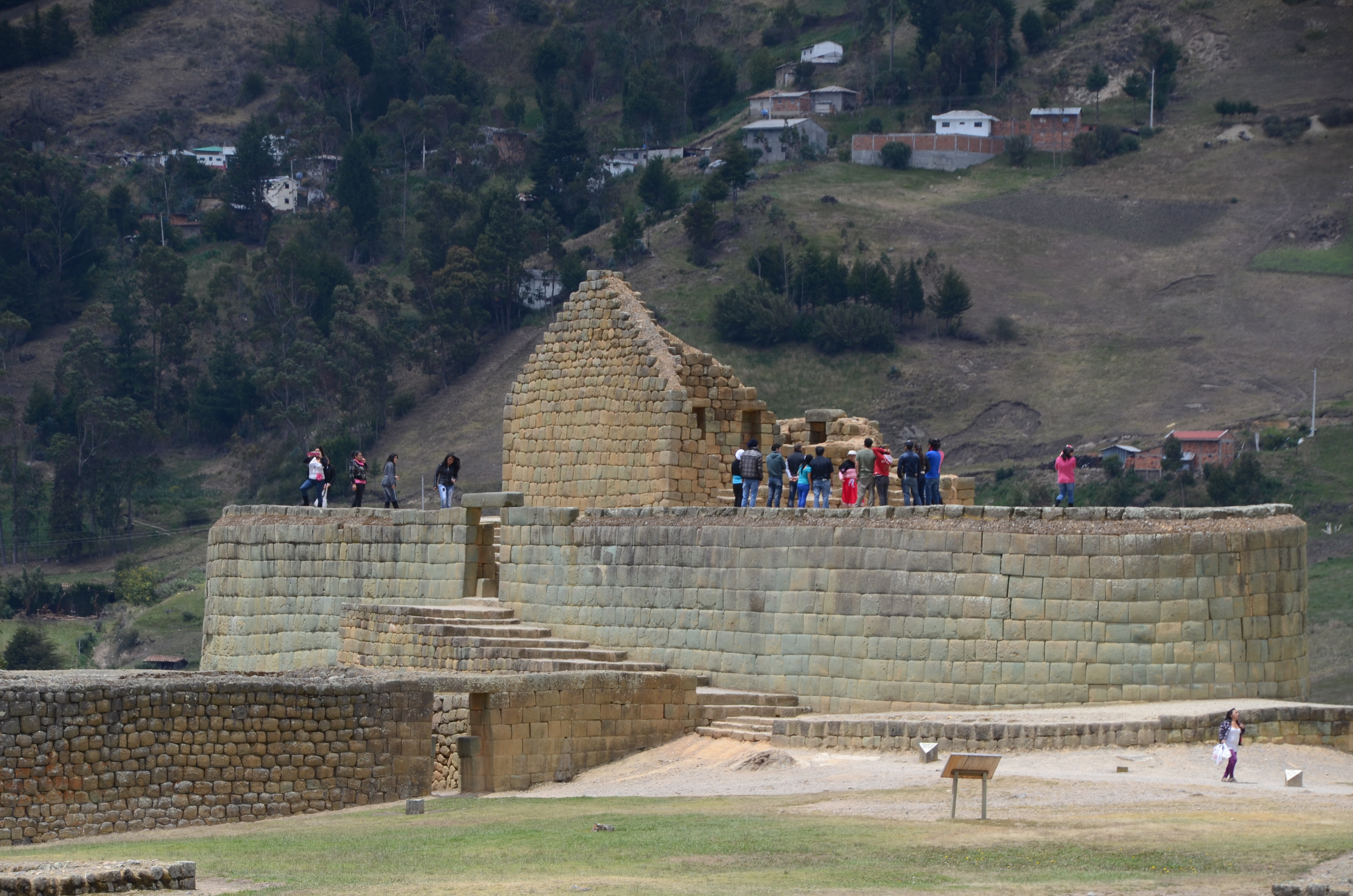 Tourists on the elliptical Temple of the Sun at Ingapirca