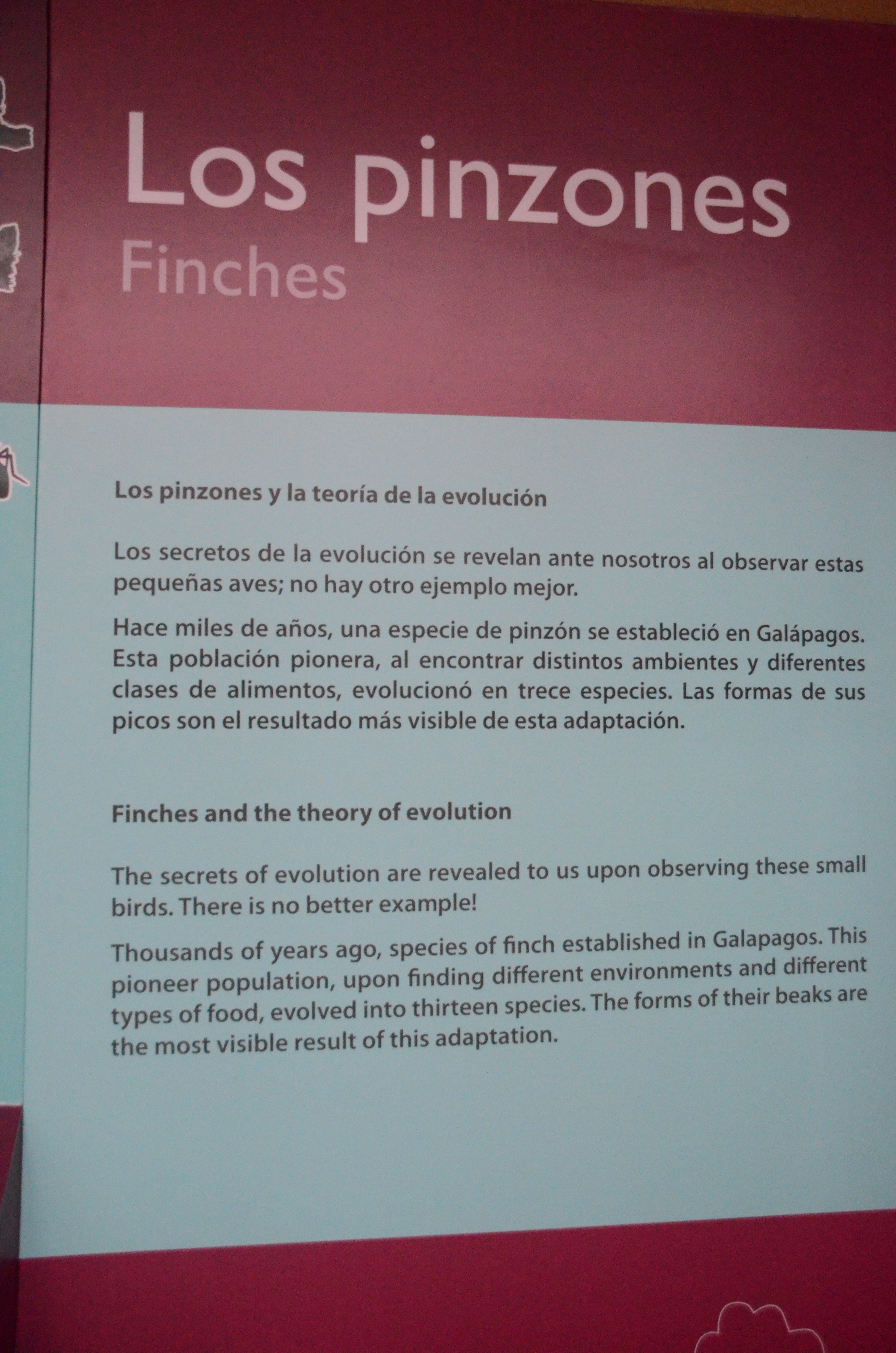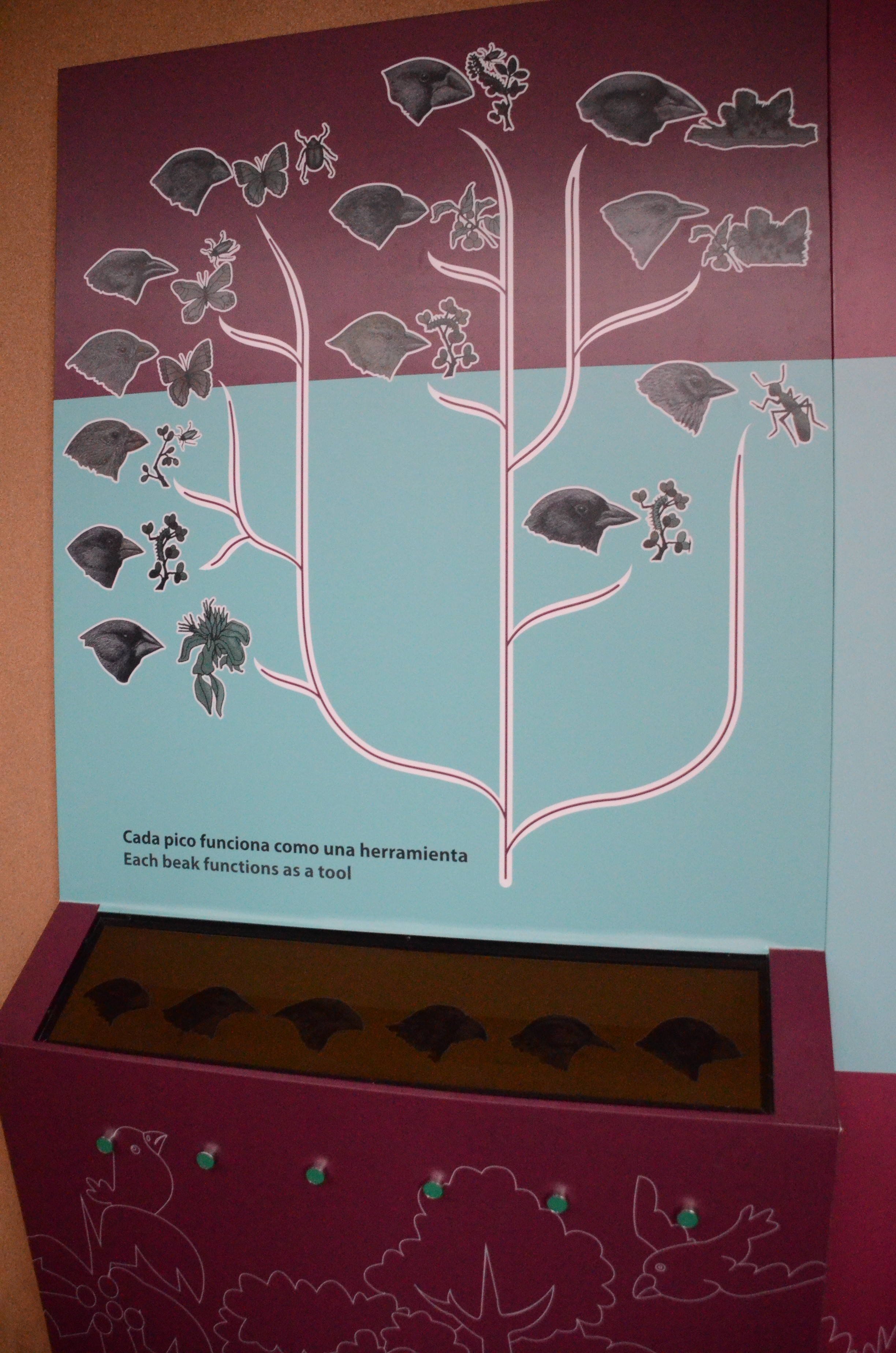 A display at the Interpretive center showing the different type of finches found on the Galapagos Islands.