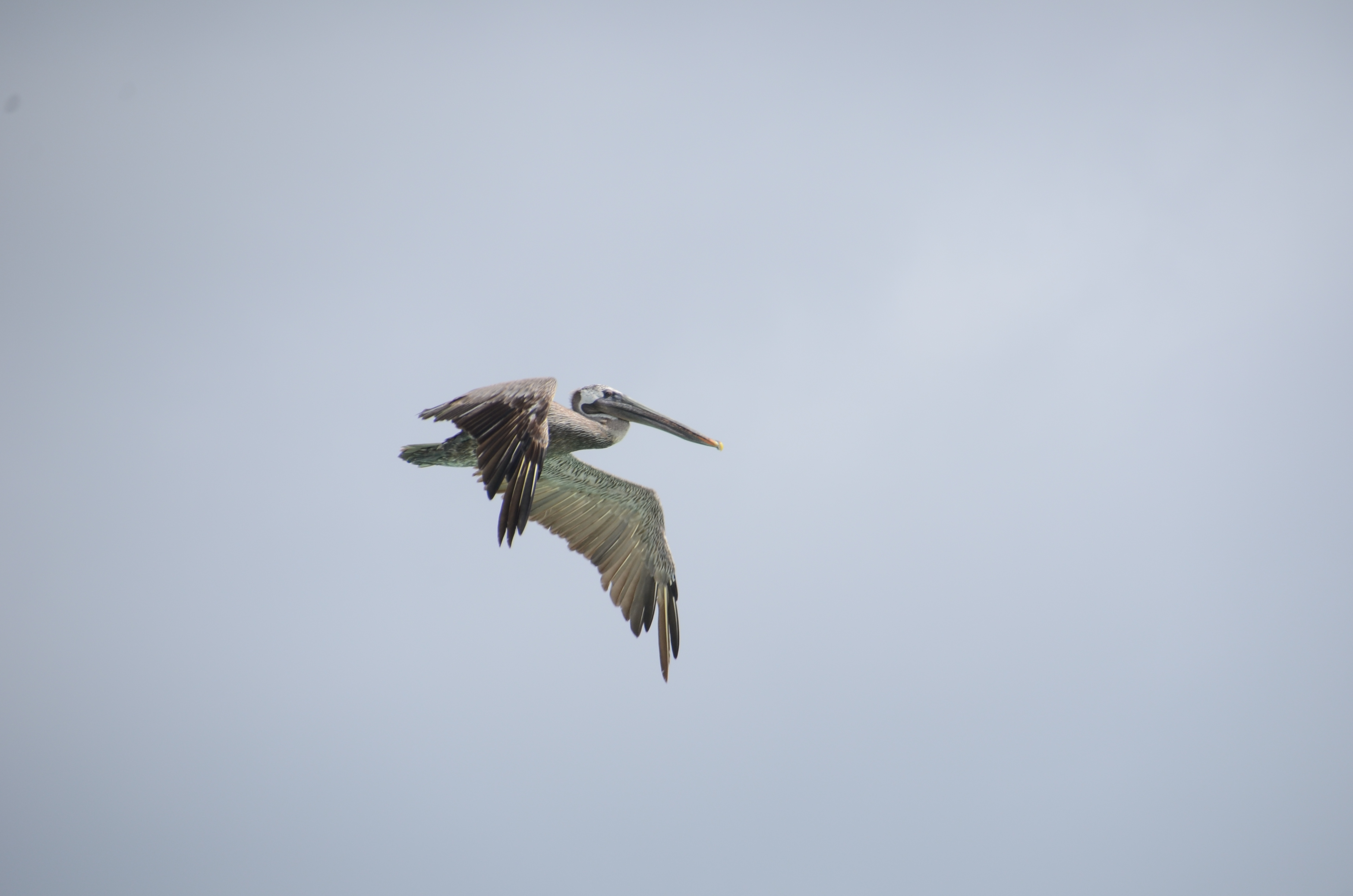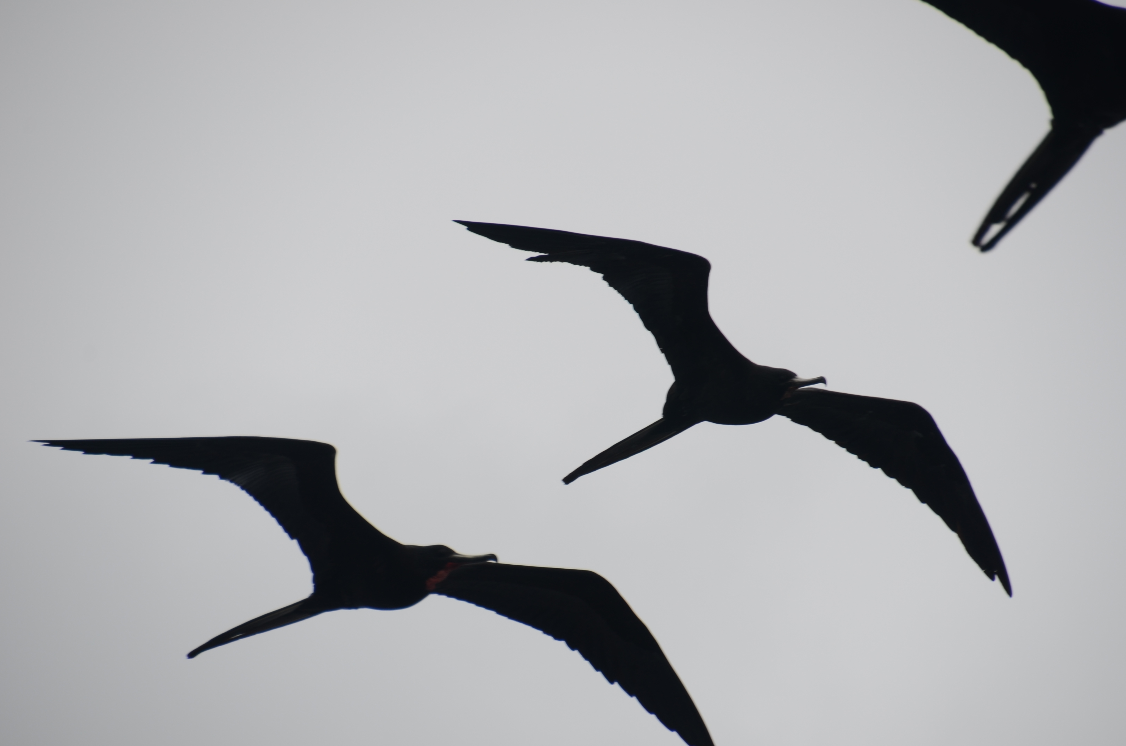 Although we first saw Frigate birds traversing the Panama Canal in 2010, they are still impressive to watch in flight. They are related to pelicans but have some unique features. With the largest weight to wingspan ratio of any bird on the planet, the black and white bird has a forked tail and appears to effortlessly snatch food off the ocean’s surface, or from other birds. During mating season, the male displays a heart-shaped, American football-sized gular pouch in bright red-orange.