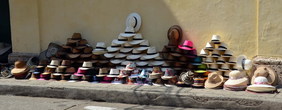 Protection from too much sun has a practical tradition that predates sunscreen. The name “Sombrero Vueltiao” means “turned hat” and is a national symbol of Colombia. The hats originated from the indigenous Zenú or Sinú farmers. Hats are woven from Gynerium sagittatum, or caña flecha, a locally grown cane. Quality is determined by the hats’ bending flexibility. The more pairs of fibers braided together, the higher the hat quality.