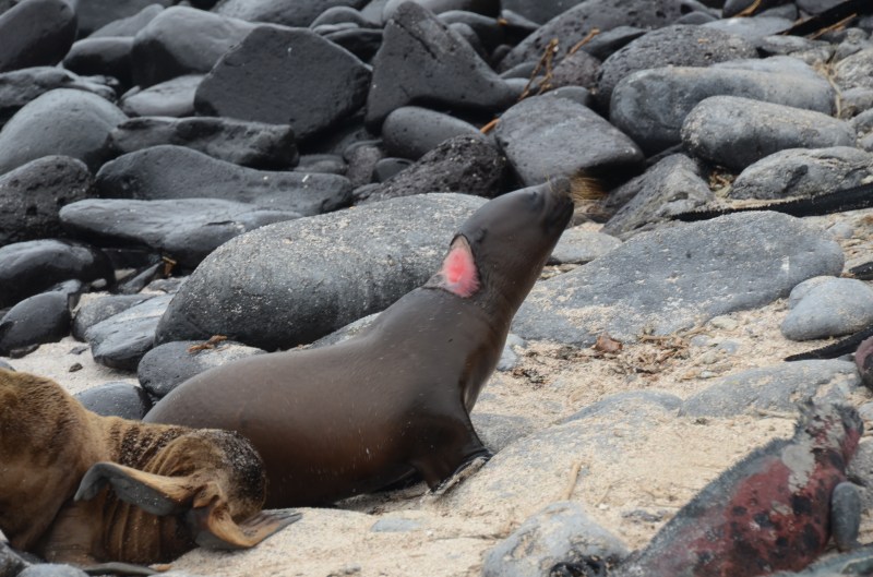This unfortunate young cub had an encounter with a shark but survived — for now. There is always a chance that infection could set in. Our naturalist advised us that park staff would be notified about this cub so that appropriate care could be provided