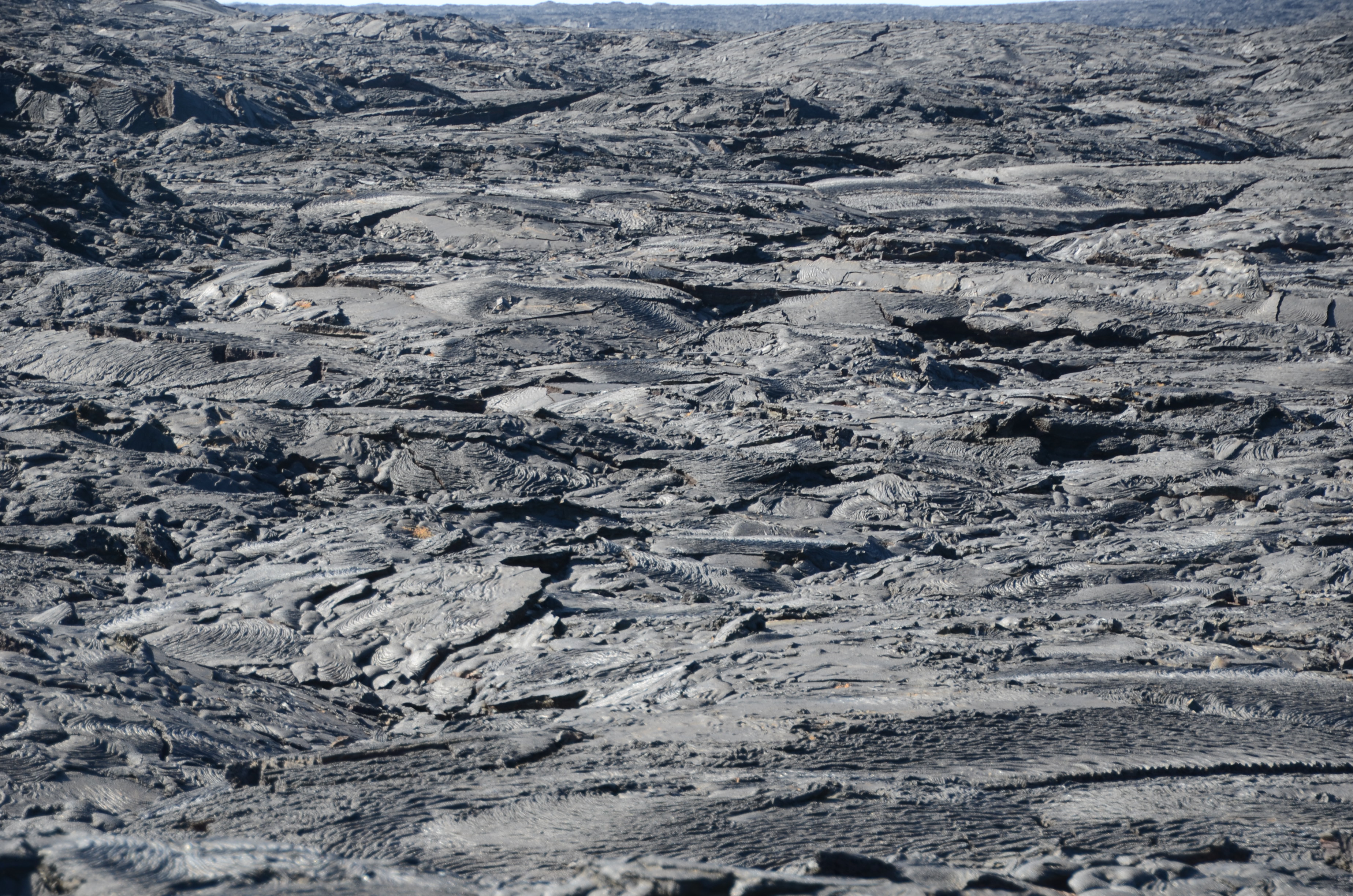 A view of the lava field containing a variety of Pahoehoe (also called rope) lava designs.